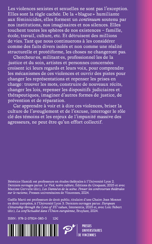 Un livre essentiel, à la fois témoignage et guide, qui dévoile le continuum des violences sexistes et sexuelles. En croisant les voix de chercheur·es, expert·es, artistes et personnes concernées, il ouvre des pistes concrètes pour comprendre, prévenir et agir collectivement.