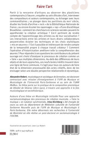 Partir à la rencontre d'artisans ou observer des plasticiens contemporains à l'œuvre; enquêter au sein d'écoles d'art, interviewer des compositeurs et auteurs ; se plonger dans les partitions du XVIIème siècle, étudier les fonds d'archives "rock" de la Bibliothèque Nationale de France; ou encore écumer les rayonnages "rap" d'une discothèque: comment les chercheurs en sciences sociales peuvent-ils appréhender la création artistique ?
