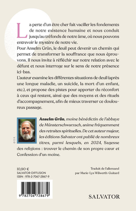 Faire son deuil, c'est aimer. Mais comment rester en lien avec le défunt par delà la mort ? Comment faire une place au deuil dans notre coeur. Comme l'explique le moine bénédictin Anselm Grün, la mort d'un être cher est un au revoir douloureux. Nous devons faire face au chagrin qu'engendre ce départ. Le deuil est un chemin qui permet de transformer la souffrance que nous éprouvons. Mais il s'agit aussi de méditer sur notre relation avec le défunt et de nous interroger sur le sens de notre propre vie. Anselm Grün n'évoque pas seulement ce que sont le deuil et ses différentes phases, il traite également de la manière dont nous pouvons lui faire une place dans notre coeur et dans notre vie. Tout en examinant les différentes situations de perte d'un être cher (vieillesse, accident, etc), il propose des pistes pour apporter du réconfort à ceux qui restent, ainsi que des moyens et des rituels d'accompagnement afin de mieux traverser ce douloureux passage.
