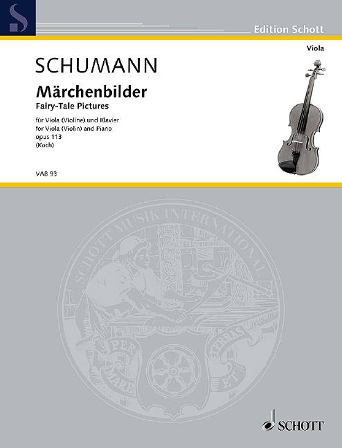 In the summer of 1852, Vier Stücke [‘Four Pieces’] for viola and piano by Robert Schumann were published under the title Märchenbilder [‘Fairy-Tale Pictures’] by the Kassel publishing house Luckhardt, with a particularly expressive vignette on the title page. Unusual were both this title Märchenbilder, on the one hand, and the scoring with a solo viola, on the other. With the viola in a soloistic role in chamber music, Schumann’s Märchenbilder, Op. 113, offers a rather unfamiliar, but all the more delightful sound. Instrumentation: viola (violin) and piano op. 113