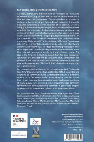 Cet ouvrage constitue les actes du colloque organisé à l’université Paris 1 Panthéon Sorbonne le 26 septembre 2018. Il rassemble une vingtaine de contributions qui s’intéressent chacune à différents aspects de ce fait aérien et de l’arme aérienne dans la culture. Que ce soit dans ses dimensions humaines, techniques, politiques et stratégiques, cette somme permet d’appréhender comment fonctionne un mythe populaire, comment il génère ses propres représentations et comment celle-ci sont instrumentalisées.