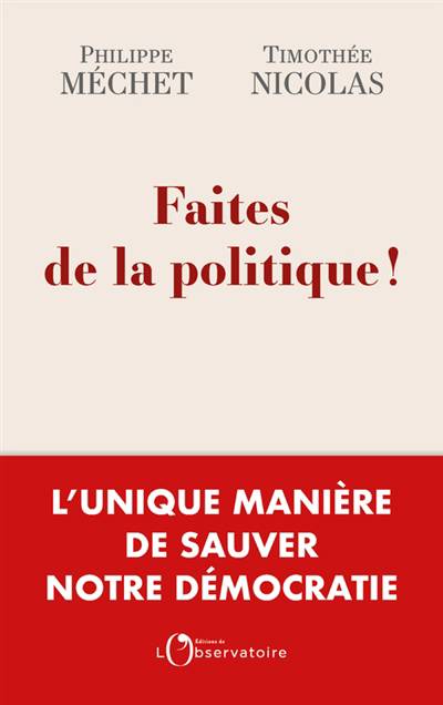 Pour répondre à ces questions essentielles en ce début de siècle, Philippe Méchet et Timothée Nicolas ont parcouru les antichambres du pouvoir. Ils se sont entretenus avec des ministres, des chefs de parti, en les abordant avec une question simple : pourquoi avez-vous choisi l'engagement politique ? Ils ont même réalisé ce qui fut probablement l'un des derniers entretiens de Valéry Giscard d'Estaing. Et discutant avec tous ceux qui font et qui ont fait le peuple politique de la France, analysant la nouvelle radicalité de leur époque, questionnant les désillusions des uns et le cynisme des autres, ils parviennent dans ce véritable manuel démocratique à redorer le blason si terni de l'engagement, et à redonner le goût de la politique au lecteur.