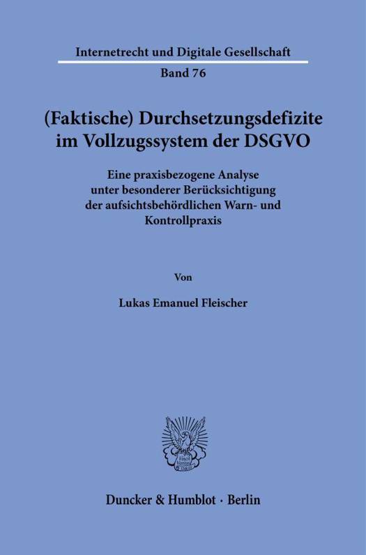 English summary: (Factual) Enforcement Deficits in the GDPR's Enforcement System. A Practical Analysis with Special Consideration of the Warning and Control Practices of the Supervisory Authorities This thesis deals with the enforcement system of data protection law under the European General Data Protection Regulation and examines whether European data protection law suffers from a practical enforcement deficit, particularly with regard to the enforcement practice of the German supervisory authorities. To this end, the author takes an empirical and legal view of the enforcement practice by the German supervisory authorities. German description: Der Vollzug des europaischen Datenschutzrechts ist ein mittlerweile seit Jahrzehnten heiss diskutiertes Thema. Auch unter der Geltung der Datenschutz-Grundverordnung begegnet das Datenschutzrecht regelmassig dem Vorwurf an einem Vollzugsdefizit zu leiden. Als Hauptschuldigen fur die (angeblich) unzureichende Durchsetzung des Datenschutzrechts machen beachtliche Teile der Rechtsliteratur und -praxis die (Datenschutz-)Aufsichtsbehorden aus. Ob dieser Vorwurf gegenuber den deutschen (Datenschutz-)Aufsichtsbehorden gerechtfertigt ist, welche Ursachen und Abhilfemassnahmen dafur in Betracht kommen und welche Rolle die ubrigen Vollzugsakteure spielen, untersucht diese Arbeit.Eine eingehende Betrachtung des aufsichtsbehordlichen Rechtsvollzugs zeigt, dass die deutschen Aufsichtsbehorden bei offentlichen Warnungen eine Rechtsdurchsetzung betreiben, die gesetzlich nicht ausdrucklich vorgesehen ist. Andererseits fuhren sie aufsichtsbehordliche Kontrollen nicht oder unzureichend durch, obwohl diese ausdrucklich im Gesetz vorgesehen sind.