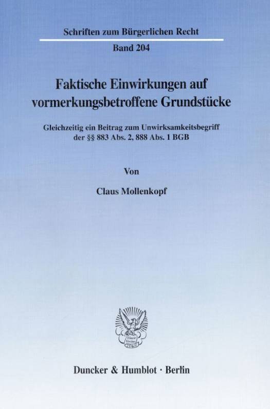 Der Autor befaßt sich in der vorliegenden Untersuchung mit der Frage, wie sich der Schutz des Vormerkungsberechtigten darstellt, wenn das vormerkungsbetroffene Grundstück im Zeitraum vor Verwirklichung des vormerkungsgesicherten Anspruchs durch einen Dritterwerber oder durch einen sonstigen Dritten eine Substanzveränderung erfahren hat.An den Beispielen des auflassungsvormerkungswidrigen Grundstückseigentums- sowie Grundschulderwerbs wird insbesondere aufgezeigt, wie bei zwischenzeitlich erfolgtem vormerkungswidrigem Rechtserwerb gerade das Zusammenwirken der dinglichen Sicherungswirkung des 883 Abs. 2 BGB mit dem schuldrechtlichen Instrument des 281 Abs. 1 BGB den eigentlichen »Eingriffsschutz« des Vormerkungsberechtigten ausmacht, kraft dessen er Zugriff auf Surrogationsansprüche des Vormerkungsverpflichteten aus dessen Kausalverhältnis mit dem vormerkungswidrigen Erwerber erlangen kann.Zu diesem Ergebnis gelangt der Verfasser auf der Grundlage einer neuen Konzeption von der »relativen Unwirksamkeit«: Sie begreift die »relative Unwirksamkeit« wegen der Anspruchsakzessorietät der Vormerkung als eine zunächst nur »hypothetische«, welche erst im Zeitpunkt der Anspruchsverwirklichung zu einer »effektiven« - dann allerdings rückwirkenden - Unwirksamkeit wird.