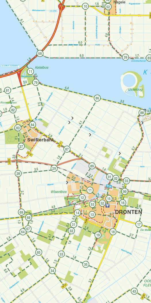 Of je nu fietst langs het Veluwemeer, door Zwolle of rondom Emmeloord, met behulp van deze kaart weet je altijd waar je je bevindt.