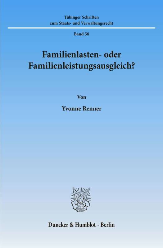 Art. 6 Abs. 1 GG fordert neben einem Familienlastenausgleich (Benachteiligungsverbot) auch einen Familienleistungsausgleich (Förderungsgebot). Durch den Ausgleich finanzieller Mehrbelastungen soll das Benachteiligungsverbot und durch die Berücksichtigung von Betreuungsleistungen der Eltern das Förderungsgebot verwirklicht werden.
