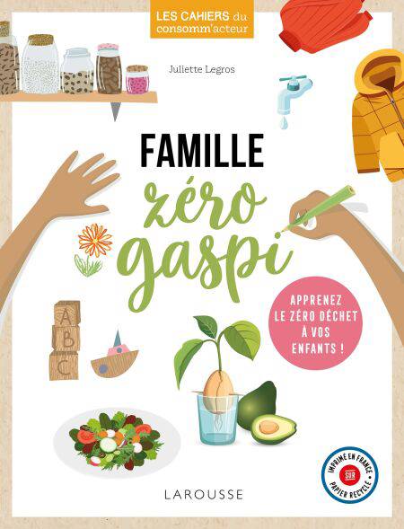 Ensemble, nous pouvons agir au quotidien pour pre server l’environnement.Apprenons à nos enfants les écogestes et les bonnes habitudes ! Dans ce guide, découvrez de nombreux conseils et astuces pour mener une vie saine et responsable en famille et où chacun peut apporter sa contribution. A quoi ça sert, le « zéro déchet » ? Les grands problèmes environnementaux (réchauffement du climat, menaces sur la vie sauvage, plastique…) expliqués simplement pour donner du sens à nos actions. Un as du zéro gaspi à la maison ! Trier et valoriser les déchets, manger autrement, chasser le gaspillage (de vêtements, d’énergie, d’eau) ; réduire sa consommation numérique… Des loisirs 100 % zéro déchet : « surcycler » (où comment faire du neuf avec du vieux) ; faire des activités zéro carbone… Jardiner écologique : composter, faire de la place à la vie sauvage, élever des poules… Des fêtes et l’école en mode zéro gaspi : organiser un Noël écoresponsable, l’équipement de l’écolier-écolo… Avec de nombreux tutos et des activitéspour vos« écolokids » : des bombes à graines, une éponge tawashi, un joli sac à partir d’un vieux tee-shirt, etc. Ce livre est imprimé en France sur du papier recyclé par Larousse. Ne restez plus un simple consommateur : devenez consomm’acteur !