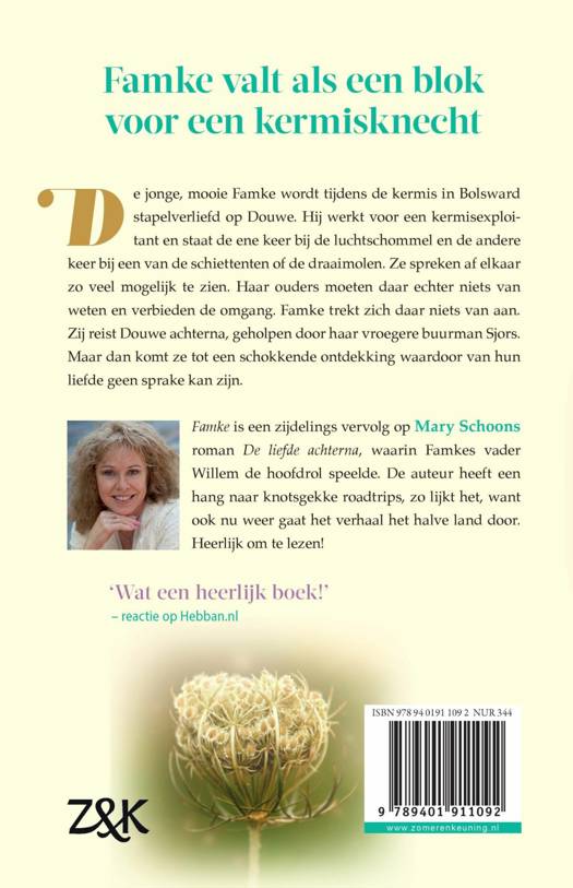 Op de kermis in Bolsward is meer dan genoeg te beleven voor de jonge Famke, hoofdpersoon uit deze gelijknamige roman van Mary Schoon. Zeker als ze er Douwe ontmoet, die er werkt. De ene keer staat hij bij de luchtschommel, de volgende bij de schiettent. Ze spreken af elkaar zo veel mogelijk te zien. Maar als Famkes ouders erachter komen dat ze verkering heeft met zo'n stuk uitschot, verbieden ze elke omgang. Famke trekt zich daar niets van aan en reist, geholpen door een vroegere buurman, stiekem Douwe achterna. Maar dat kan natuurlijk niet goed blijven gaan.