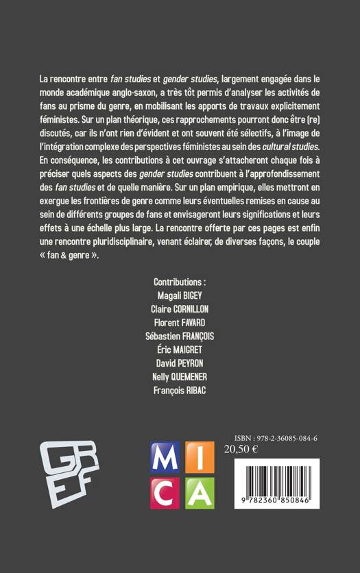 la rencontre entre "fan studies" et "gender studies", largement engagée dans le monde académique anglo-saxon, a très tôt permis d'analyser les activités de fans au prisme du genre, en mobilisant les apports de travaux explicitement féministes. Ces contributions s'attacheront à préciser quels aspects des gender studies contribuent à l'approfondissement des fan studies et de quelle manière.