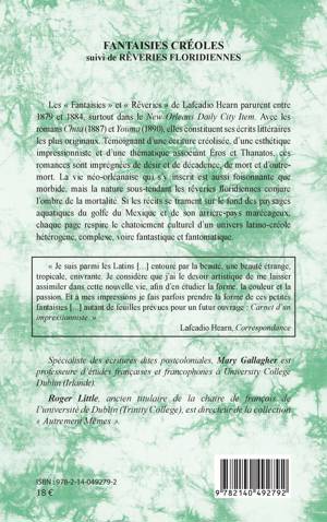 Les Fantaisies et Rêveries de Lafcadio Hearn parurent entre 1879 et 1884, surtout dans le New Orleans Daily City Item. Avec les romans Chita (1887) et Youma (1890), elles constituent ses écrits littéraires les plus originaux. Témoignant d'une écriture créolisée, d'une esthétique impressionniste et d'une thématique associant Éros et Thanatos, ces romances sont imprégnées de désir et de décadence, de mort et d'outre-mort. La vie néo-orléanaise qui s'y inscrit est aussi foisonnante que morbide, mais la nature sous-tendant les rêveries floridiennes conjure l'ombre de la mortalité. Si les récits se trament sur le fond des paysages aquatiques du golfe du Mexique et de son arrière-pays marécageux, chaque page respire le chatoiement culturel d'un univers latino-créole hétérogène, complexe, voire fantastique et fantomatique.