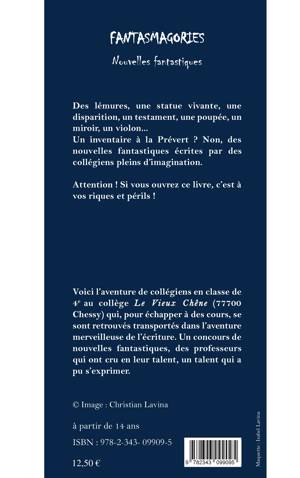 Des lémures, une statue vivante, une disparition, un testament, une poupée, un miroir, un violon... Un inventaire à la Prévert ? Non, des nouvelles fantastiques écrites par des collégiens pleins d'imagination. Attention ! Si vous ouvrez ce livre, c'est à vos risques et périls ! A partir de 14 ans
