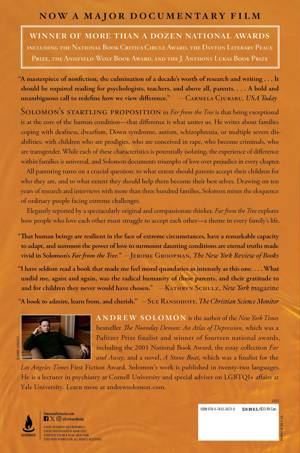 Far from the Tree is that being exceptional is at the core of the human condition--that difference is what unites us. He writes about families coping with deafness, dwarfism, Down syndrome, autism, schizophrenia, or multiple severe disabilities; with children who are prodigies, who are conceived in rape, who become criminals, who are transgender. While each of these characteristics is potentially isolating, the experience of difference within families is universal, and Solomon documents triumphs of love over prejudice in every chapter.