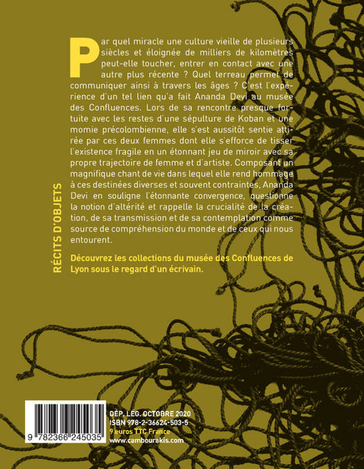 Deuxième texte publié en coédition avec le musée des Confluences (à Lyon). Ananda Devi a été interpellée par une momie de femme péruvienne. Elle imagine la trajectoire de cette femme qui a beau avoir vécu à l'autre bout du monde il y a des siècles, elle lui semble extrêmement proche. À partir de cet "objet" troublant et terriblement humain, elle réfléchit à sa propre vie, aux impasses qu'elle peut rencontrer dans son écriture, à la condition des femmes en général et au pouvoir de l'art. Un texte bouleversant.