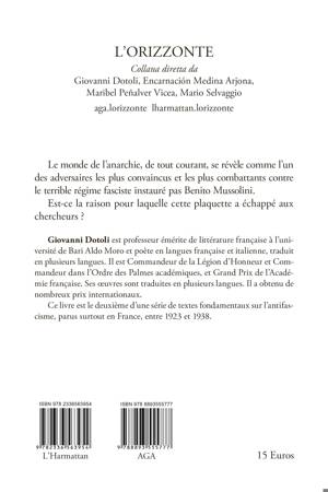 En 1925, naît la Fédération internationale de la Libre-Pensée prolétarienne, connue sous le nom d’Organisation des travailleurs sans dieu. Cette nouvelle Fédération nationale continue toutefois à faire partie de l’ancienne Internationale qui est toujours installée à Bruxelles. Dans ce numéro de « La Libre Pensée », on lit que le fascisme a « ravagé l’Italie et l’Espagne, s’est implanté en beaucoup d’autres pays, fomentant des coups d’État, foulant aux pieds les garanties constitutionnelles, écrasant les peuples sous le poids de dictatures implacables » (p. 1). Le monde de l’anarchie, de tout courant, se révèle comme l’un des adversaires les plus convaincus et les plus combattants contre le terrible régime fasciste instauré pas Benito Mussolini. Est-ce la raison pour laquelle cette plaquette a échappé aux chercheurs ?