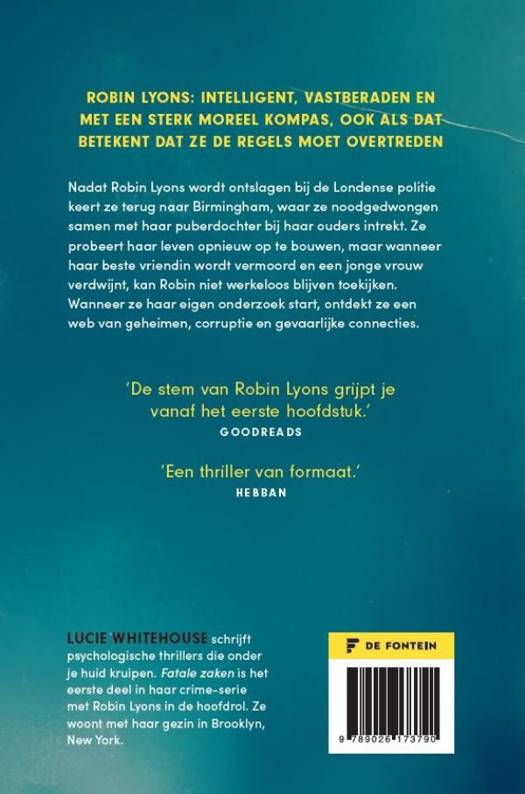 Deel 1 in de Robin Lyonss-serie. Na haar ontslag bij de Londense politie keert Robin Lyons terug naar Birmingham waar ze noodgedwongen samen met haar puberdochter bij haar ouders intrekt. Ze probeert haar leven opnieuw op te bouwen. Maar wanneer haar beste vriendin wordt vermoord en een jonge vrouw verdwijnt, kan Robin niet werkloos toekijken. Terwijl ze haar eigen onderzoek start, ontdekt ze een web van geheimen, corruptie en gevaarlijke connecties. Spannend boek voor fans van Nicci French en M.J. Arlidge.