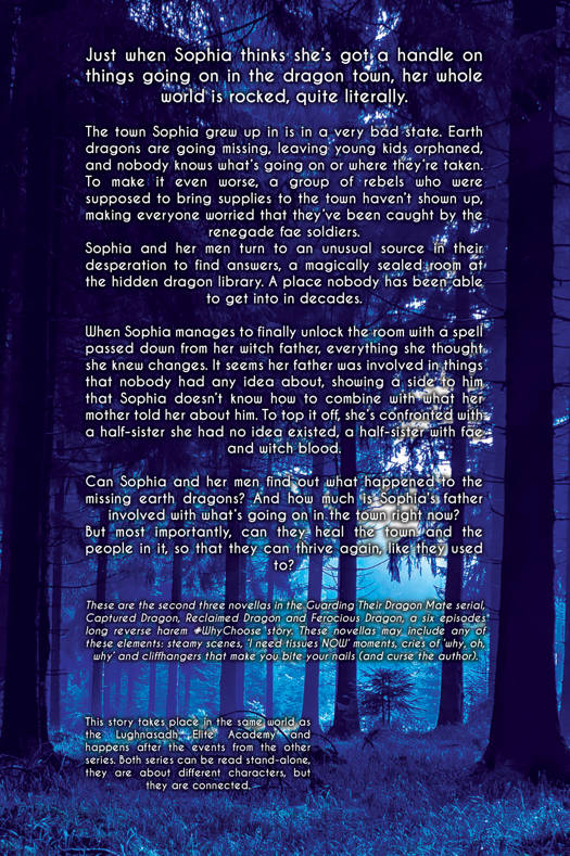 This collection includes the second three novellas in the Guarding Their Dragon Mate serial (Captured Dragon, Reclaimed Dragon and Ferocious Dragon) a six episodes long reverse harem #WhyChoose story. These novellas may include any of these elements: steamy scenes, ‘I need tissues NOW’ moments, cries of ‘why, oh, why’ and cliffhangers that make you bite your nails (and curse the author).