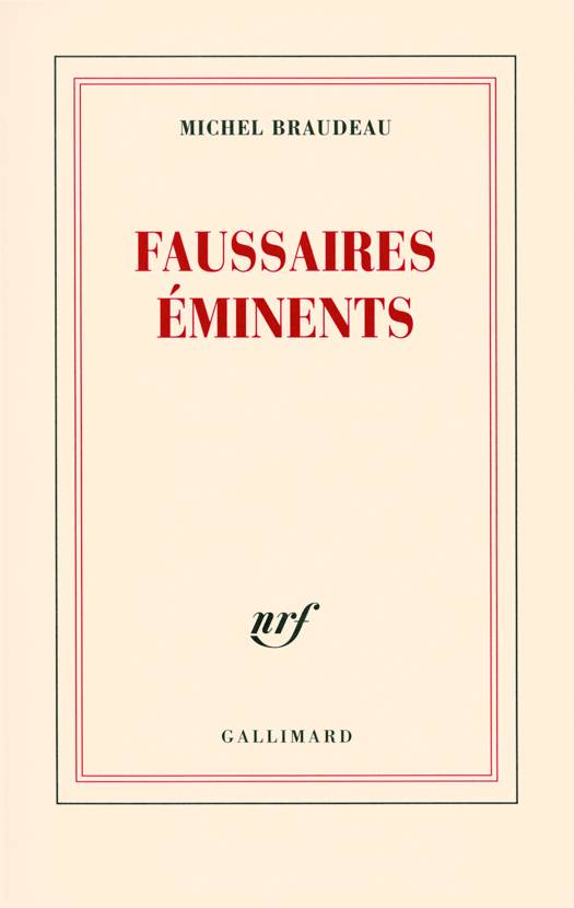 "Les faussaires qui "réussissent" sont toujours des gens imaginatifs et de grand talent, parfois sympathiques. J'en ai retenu quelques-uns de fort divertissants. D'autres prêtent beaucoup moins à rire. Car l'empire du faux s'étend à tout, comme le royaume du Diable, et si bien des mensonges ne sont que des plaisanteries ou des escroqueries, ne provoquent que des blessures d'orgueil ou des plaies d'argent, certains font couler le sang. La propagande se nourrit de faux, les utilise pour préparer ou justifier des guerres. Et les pires faux, subtils, évasifs, égarent l'intelligence. Or la bêtise n'est pas un mal bénin." Michel Braudeau.