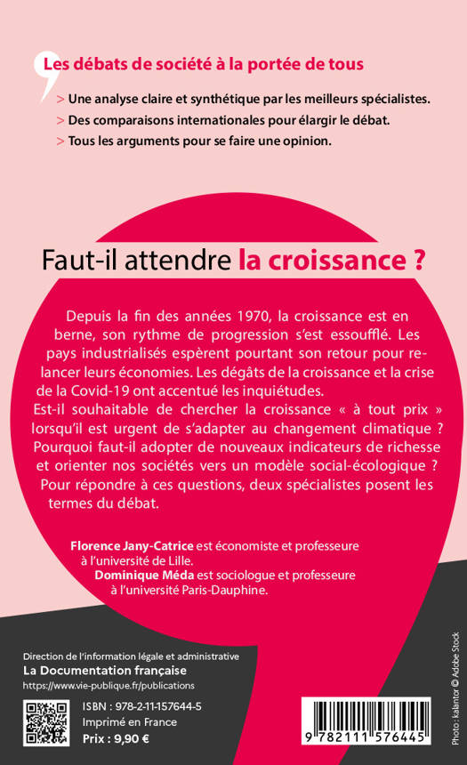 Depuis la fin des années 1970, la plupart des pays industrialisés formulent une supplique lancinante : que la croissance revienne ! Or partout en Europe la croissance semble essoufflée. Parallèlement, la prise de conscience de l’urgence de réduire drastiquement les émissions de gaz à effet de serre, intimement liées à l’activité économique et responsables pour partie du dérèglement climatique, est de plus en plus forte. Poursuivre la croissance à tout prix, est-ce raisonnable sur une planète marquée par la finitude, notamment des ressources naturelles ? ? D’où l’interrogation qui traverse tout cet ouvrage : la croissance est-elle encore réalisable et souhaitable ?