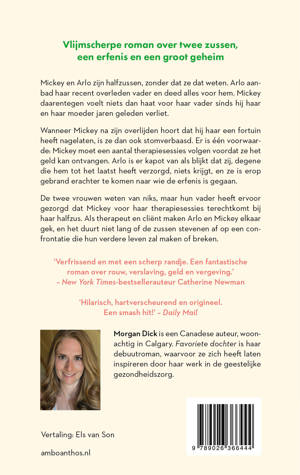 Nadat Mickeys vader haar moeder heeft verlaten, besluit ze hem te vergeten en dat gaat lang prima. Vooruit, ze drinkt, maar ze zou heus kunnen stoppen. Dan hoort ze dat haar vader is overleden en dat ze een erfenis krijgt. Op één voorwaarde: dat ze zeven therapiesessies volgt. Arlo heeft meer issues dan de meesten van haar cliënten. Ze is therapeut, maar dat wil niet zeggen dat ze om kan gaan met haar vaders dood. En dan heeft hij ook nog eens zijn geld nagelaten aan een dochter van wie niemand ooit gehoord heeft. Arlo is woest – en vastbesloten erachter te komen wie haar erfenis heeft ingepikt.De twee kruisen onbewust elkaars pad. Het is idioot, het is onethisch. Het is perfect.