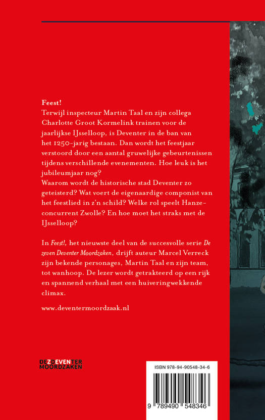 In ‘Feest!’, het nieuwste deel van de succesvolle serie ‘De zeven Deventer Moordzaken’, drijft auteur Marcel Verreck zijn bekende personages, Martin Taal en zijn team, tot wanhoop. De lezer wordt getrakteerd op een rijk en spannend verhaal met een huiveringwekkende climax.