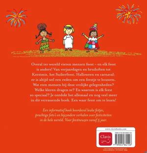 Overal ter wereld vieren mensen feest – en elk feest is anders! Van verjaardagen en bruiloften tot Kerstmis, het Suikerfeest, Halloween en carnaval: er is altijd wel een reden om een feestje te bouwen. Wat eten mensen bij deze vrolijke gelegenheden? Welke kleren dragen ze? En waarom is elk feest zo speciaal? Je ontdekt het allemaal en nog veel meer in dit verrassende boek. Een waar feest om te lezen!