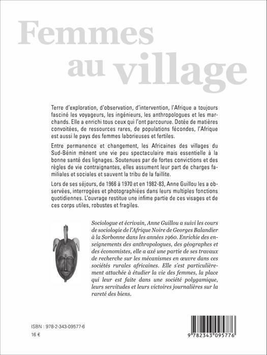 Terre d'exploitation, d'observation, d'intervention, l'Afrique a toujours fasciné les voyageurs, les ingénieurs, les anthropologues et les marchands. Elle a enrichi tous ceux qui l'ont parcourue. Dotée de matières convoitées, de ressources rares, de populations fécondes, l'Afrique est aussi le pays des femmes laborieuses et fertiles. Lors de ces séjours, de 1966 à 1970 et en 1982-83, Anne Guillou les a observées, interrogées et photographiées dans leurs multiples fonctions quotidiennes. L'ouvrage restitue une infime partie de ces visages et de ces corps utiles, robustes et fragiles. (Nombreuses photos en noir et blanc).