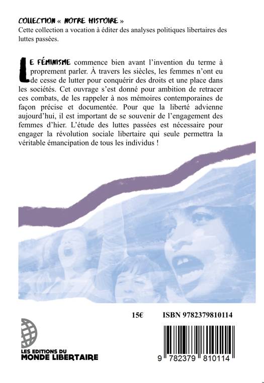 Le féminisme commence bien avant l'invention du terme à proprement parler. À travers les siècles, les femmes n'ont eu de cesse de lutter pour conquérir des droits et une place dans les sociétés. Cet ouvrage s'est donné pour ambition de retracer ces combats, de les rappeler à nos mémoires contemporaines de façon précise et documentée. Pour que la liberté advienne aujourd'hui, il est important de se souvenir de l'engagement des femmes d'hier. L'étude de nos luttes est nécessaire pour engager la révolution sociale libertaire qui seule permettra la véritable émancipation de tous les individus !