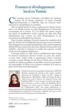 Cet ouvrage retrace l'itinéraire scientifique de l'auteure, traitant de la femme tunisienne en quête d'activité professionnelle et d'identité dans un contexte institutionnel et sociopolitique en mutation. Dans la sphère privée, le micro-crédit pour la création d'activités y est abordé comme un type d'engagement et d'insertion économique. Dans la sphère publique, l'auteure examine les modalités de la prise de décision et du leadership féminin dans la vie associative, dans l'engagement municipal puis politique.Dans le Nord-ouest et le Sud tunisien, les relations établies au quotidien entre les associations, les municipalités et l'Etat sont évoquées.