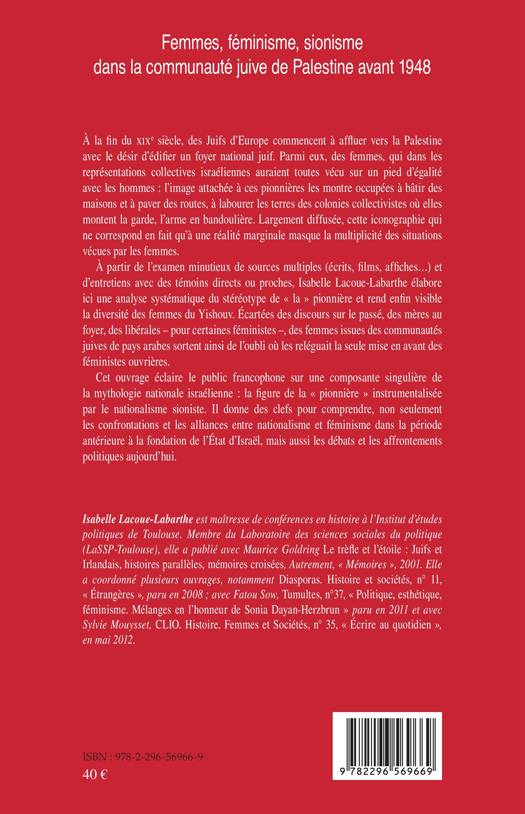 Cet ouvrage éclaire le public francophone sur une composante singulière de la mythologie nationale israélienne : la figure de la "pionnière" instrumentalisée par le nationalisme sioniste. Il donne des clefs pour comprendre, non seulement les confrontations et les alliances entre nationalisme et féminisme dans la période antérieure à la fondation de l'État d'Israël, mais aussi les débats et les affrontements politiques aujourd'hui.