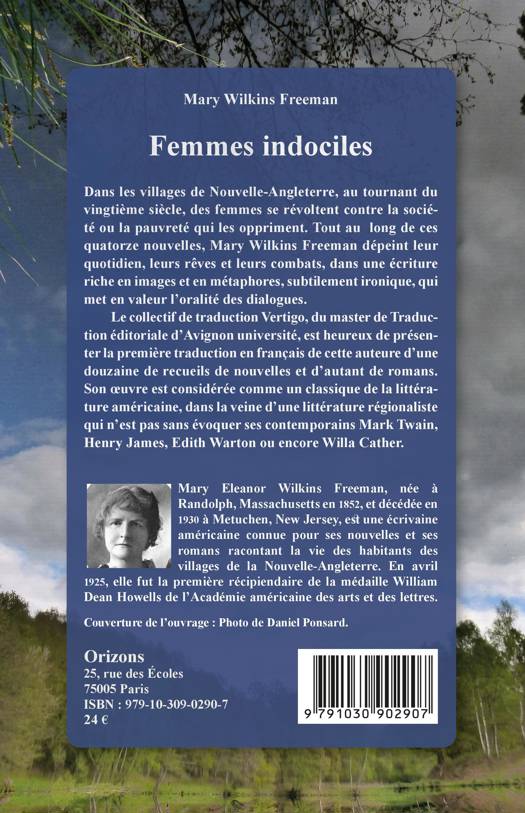 Dans les villages de Nouvelle-Angleterre, au tournant du vingtième siècle, des femmes se révoltent contre la société. Mary Wilkins Freeman dépeint leur quotidien, leurs rêves et leurs combats, dans une écriture riche en images et en métaphores. Le collectif de traduction Vertigo, du master de Traduction éditoriale d'Avignon Université, est heureux de présenter la première traduction en français de cette auteure d'une douzaine de recueils de nouvelles et d'autant de romans. Son oeuvre est considérée comme un classique de la littérature américaine.