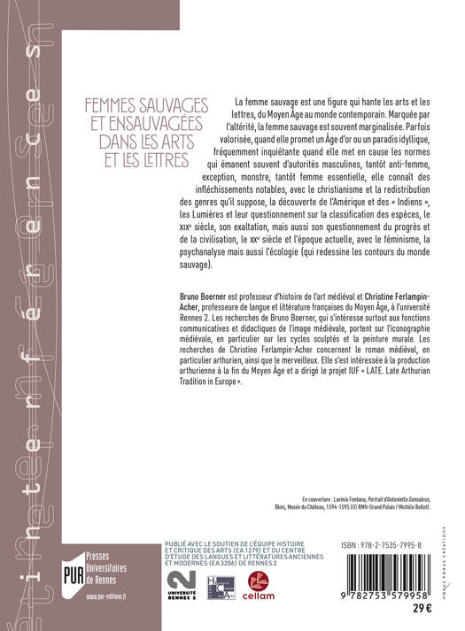 La femme sauvage n'est pas un homme sauvage comme les autres. Sa figure hante les arts et les lettres, du Moyen Âge au monde contemporain. Parfois valorisée, quand elle promet un Âge d'or, fréquemment inquiétante quand elle met en cause les normes qui émanent souvent d'autorités masculines, tantôt anti-femme ou femme essentielle, elle connaît des infléchissements notables au cours de l'histoire littéraire.