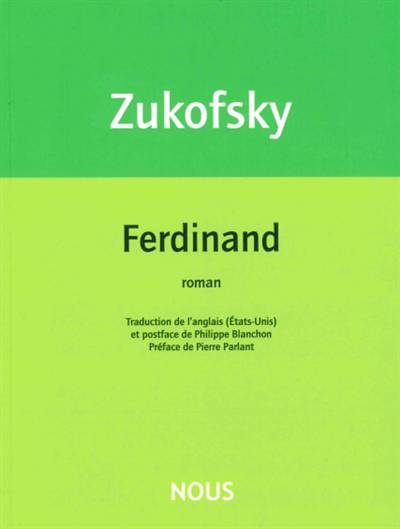 Prose décisive et sommet d'étrangeté de l'œuvre de Louis Zukofsky, Ferdinand est le portrait d'un déraciné permanent voyant l'histoire se dérouler sans lui, d'un individu qui souffre d'avoir quitté les êtres chers de son enfance et d'avoir ressenti ne jamais maîtriser son destin et ce, jusqu'à cette forme d'émancipation que constitue le départ pour l'étranger. Temps crucial du récit et nerf le plus vif de l'intrigue, le voyage sera l'occasion de rencontres qui seront autant de mises à l'épreuve pour Ferdinand. Ses divers tourments ne se résoudront que par cet axiome devant donner sens à sa vie à venir : « prendre soin des siens » - et cela au milieu des plus graves troubles historiques. Cet atypique roman, mettant en jeu la trajectoire d'un sujet ballotté, peut se lire aussi comme le récit indéfiniment relancé d'un rêve éveillé.