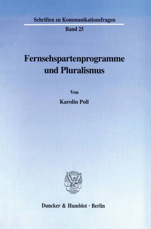 Den Kernpunkt der Untersuchung bildet die Frage, inwieweit Spartenprogramme mit dem Pluralismusgedanken des Grundgesetzes vereinbar sind. Dabei wird der Pluralismus bis auf die historischen Wurzeln der Pluralismustheorien zurückverfolgt. Die Verfasserin gibt einen umfassenden Überblick über die pluralistischen Regelungen im Rundfunkstaatsvertrag und den Landesmediengesetzen und seine Auswirkungen auf die Meinungsvielfalt. Auch Spartenprogramme leisten einen Beitrag zum Pluralismus.