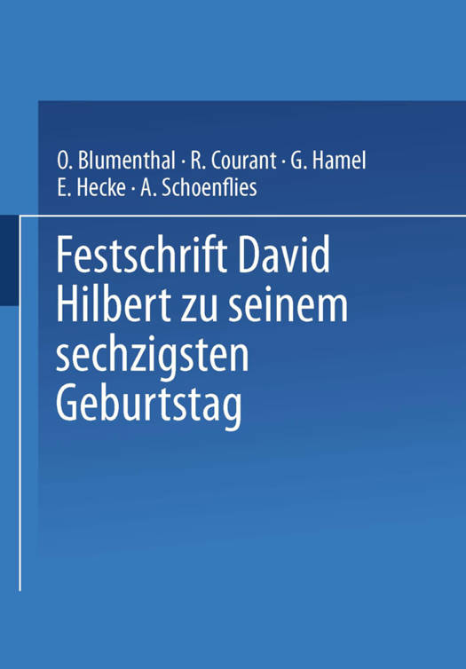 O Blumenthal, R Courant, G Hamel, E Hecke, Arthur Schoenflies