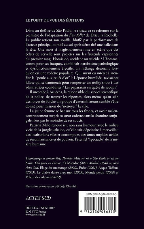 Dans un théâtre de São Paulo, le rideau va se refermer sur la première de l'adaptation du «Feu follet »de Drieu la Rochelle. Le public retient son souffle, bluffé par la performance de l'acteur principal, tombé au sol après s'être tiré une balle dans la tête. Une mort si magistralement mise en scène que des éclats de cervelle sont projetés sur les fauteuils capitonnés du premier rang. Homicide, accident ou suicide ? L'homme, connu pour ses frasques, combinait narcissisme pathologique et dysfonctionnement érectile, un mélange détonant lorsqu'on est une vedette populaire. Qui aurait eu intérêt à sacrifier la "poule aux oeufs d'or" ? L'épouse humiliée, ravissante idiote qui se damnerait pour remporter un reality show ? Les admiratrices éconduites ? Les paparazzis en quête de scoop ?