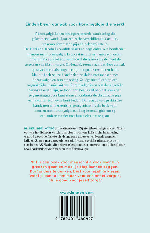 Dr. Herlinde Jacobs is revalidatiearts en begeleidde vele honderden mensen met fibromyalgie. In 2011 startte ze een succesvol oefenprogramma op, met oog voor zowel de fysieke als de mentale aspecten van fibromyalgie. Onderzoek toonde aan dat deze aanpak op zowel korte als lange termijn tot goede resultaten leidt.