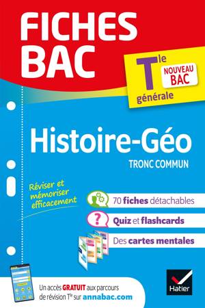 Des fiches de révision conformes au nouveau programme d’Histoire-Géographie Tle générale (tronc commun)  : un outil 100  % efficace pour réussir le contrôle continu et l’évaluation commune.