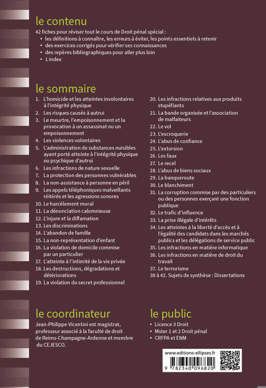 42 fiches pour réviser tout le cours de Droit pénal spécial :