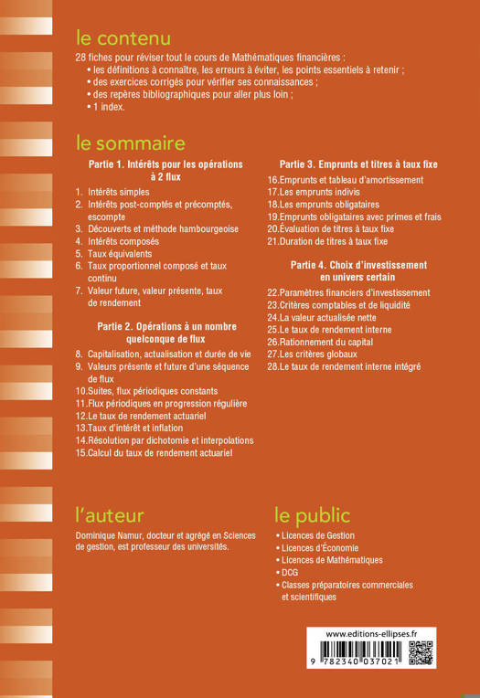 21 fiches de cours pour réviser l'essentiel des Mathématiques financières :