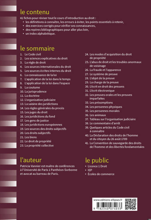 Cette 5e édition propose 41 fiches pour réviser tout le cours d’Introduction au droit :