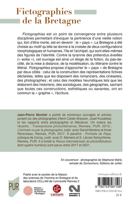 F ictographies est un point de convergence entre plusieurs disciplines permettant d’évoquer la pertinence d’une vieille notion qui, loin d’être morte, est en devenir : le « pays ». La Bretagne a été choisie au motif qu’elle se donne à la croisée de deux configurations morphologiques et humaines, l’île et l’archipel, qui sont elles-mêmes des figures de l’identité. Contre la tyrannie des prétendus éveillés (« woke »), cet ouvrage est ainsi un éloge de la fiction, du pas-de-côté, de la mise à distance, de la modélisation, du littéraire contre le littéral. Fictographies propose d’approcher le « pays » de Bretagne par deux côtés : celui de la construction des représentations fictives déclarées, telles que les disposent des romanciers, des cinéastes, des photographes ; et celui des modèles heuristiques tels que les élaborent des historiens, des sociologues, des géographes, sachant que toutes ces constructions, esthétiques ou savantes, ont en commun la « graphie », l’écriture.