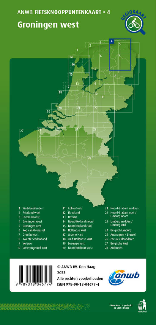 Fietsknooppuntenkaart 4 - Groningen West (Groningen, Delfzijl, Lauwersmeer, Assen)