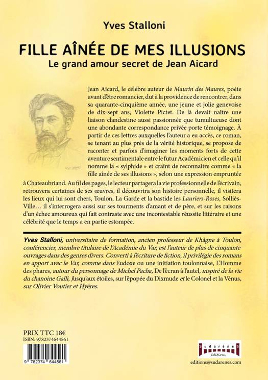 Jean Aicard, le célèbre auteur de Maurin des Maures, poète avant d'être romancier, dut à la providence de rencontrer, dans sa quarante-cinquième année, une jeune et jolie genevoise de dix-sept ans, Violette Pictet. De là devait naître une liaison clandestine aussi passionnée que tumultueuse dont une abondante correspondance privée porte témoignage. À partir de ces lettres auxquelles l'auteur a eu accès, ce roman, se tenant au plus près de la vérité historique, se propose de raconter et parfois d'imaginer les moments forts de cette aventure sentimentale entre le futur Académicien et celle qu'il nomme la sylphide et craint de reconnaître comme la fille aînée de ses illusions, selon une expression empruntée à Chateaubriand. Au fil des pages, le lecteur partagera la vie professionnelle de l'écrivain, retrouvera certaines de ses oeuvres, il découvrira son histoire personnelle, il visitera les lieux qui lui sont chers, Toulon, La Garde et la bastide les Lauriers-Roses, Solliès-Ville...; il s'interrogera aussi sur ses tourments d'amant et de père, et sur les raisons d'un échec amoureux qui fait contraste avec une incontestable réussite littéraire et une célébrité que le temps a en partie estompée. À PROPOS DE L'AUTEUR Yves Stalloni, universitaire de formation, ancien professeur de Khâgne à Toulon, conférencier, membre titulaire de l'Académie du Var, est l'auteur de plus de cinquante ouvrages dans des genres divers. Converti à l'écriture de fiction, il privilégie des romans en rapport avec le Var, comme dans Eudoxe ou une initiation toulonnaise, L'Homme des phares, autour du personnage de Michel Pacha, De l'écran à l'autel, inspiré de la vie du chanoine Galli, Jusqu'aux étoiles, sur l'épopée du Dixmude et le Colonel et la Vénus, sur Olivier Voutier et Hyères.