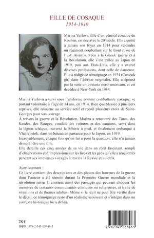Marina Yurlova a servi sous l'uniforme comme combattante cosaque, se portant volontaire à l'âge de 14 ans, en 1914. Bien que blessée à plusieurs reprises, elle retourne au service actif et reçoit plusieurs décorations. A travers la guerre et la Révolution, Marina a rencontré des Turcs, des Kurdes, des Rouges, servi dans la légion tchèque, traversé la Sibérie à pied, et finalement embarqué à Vladivostok pour le Japon en 1919. Elle détaille ces cinq années de sa vie dans un récit fascinant, rempli d'observations et d'impressions sur les lieux et les gens qu'elle a rencontrés.