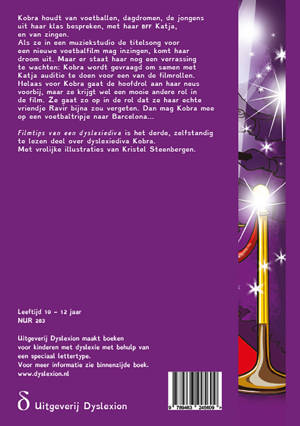 Filmtips van een dyslexiediva is het derde, zelfstandig te lezen deel over dyslexiediva Kobra. Met vrolijke illustraties van Kristel Steenbergen.