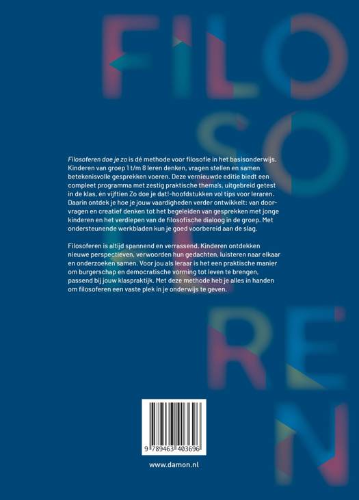 'Filosoferen doe je zo' is dé methode voor filosofie in het basisonderwijs. Kinderen van groep 1 t/m 8 leren denken, vragen stellen en samen betekenisvolle gesprekken voeren. Deze vernieuwde editie biedt een compleet programma met zestig praktische thema’s, uitgebreid getest in de klas, én vijftien Zo doe je dat!-hoofdstukken vol tips voor leraren. Daarin ontdek je hoe je jouw vaardigheden verder ontwikkelt: van doorvragen en creatief denken tot het begeleiden van gesprekken met jonge kinderen en het verdiepen van de filosofische dialoog in de groep. Met ondersteunende werkbladen kun je goed voorbereid aan de slag.
