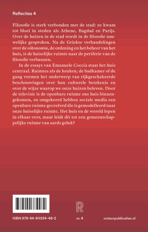 Filosofie is sterk verbonden met de stad: ze kwam tot bloei in steden als Athene, Bagdad en Parijs. Over de huizen in de stad wordt in de filosofie nauwelijks gesproken. Na de Griekse verhandelingen over de oikonomia, de ordening en het beheer van het huis, is de huiselijke ruimte naar de periferie van de filosofie verbannen. In de essays van Emanuele Coccia staat het huis centraal. Ruimtes als de keuken, de badkamer of de gang vormen het onderwerp van rijkgeschakeerde beschouwingen over hun culturele betekenis en over de wijze waarop we onze huizen beleven. Door de televisie is de openbare ruimte ons huis binnengekomen, en omgekeerd hebben sociale media een openbare ruimte gecreëerd die is gemodelleerd naar onze huiselijke ruimte. Het huis en de wereld lopen in elkaar over, maar leidt dit tot een gemeenschappelijke ruimte van aards geluk?