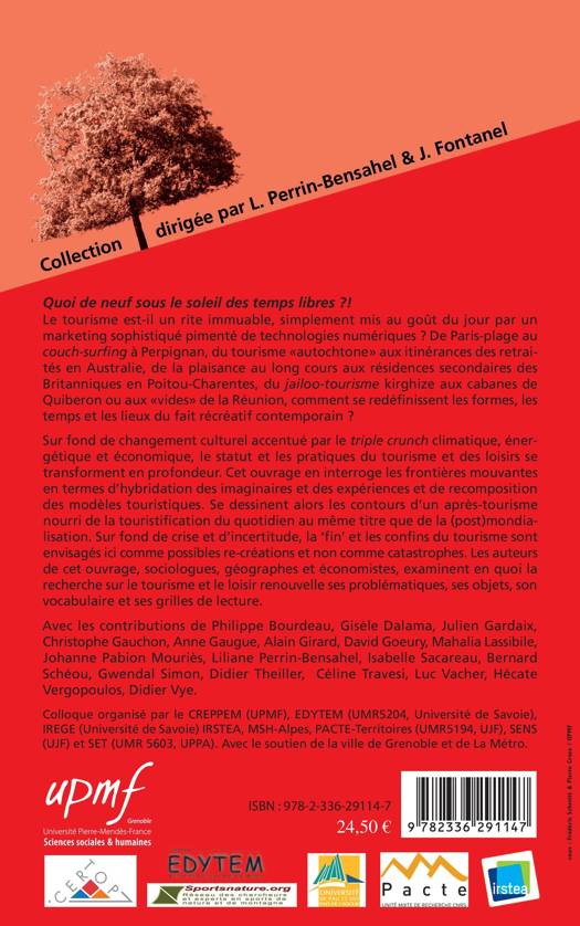 Sur fond de changement culturel accentué par le triple crunch climatique, énergétique et économique, le statut et les pratiques du tourisme et des loisirs se transforment en profondeur. Ce livre en interroge les frontières mouvantes : se dessinent alors les contours d'un après-tourisme nourri de la touristification du quotidien au même titre que de la (post)mondialisation. La recherche sur le tourisme doit donc renouveler ses problématiques, ses objets, son vocabulaire et ses grilles de lecture.