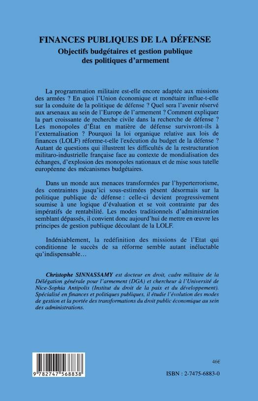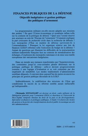 Par une analyse juridique, économique et financière, l'auteur détaille les enjeux actuels de la Défense à travers les évolutions des industries nationales d'armement. Etat des lieux précis et documenté (plus de 700 références bibliographiques), l'ouvrage rapproche la politique d'équipement militaire des principaux objectifs de gestion publique dans un contexte de structuration de l'Union économique et monétaire.