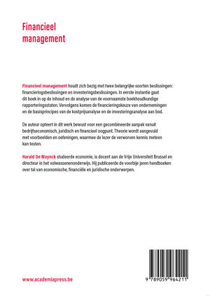 Financieel management houdt zich bezig met twee belangrijke soorten beslissingen: financieringsbeslissingen en investeringsbeslissingen. In eerste instantie gaat dit boek in op de inhoud en de analyse van de voornaamste boekhoudkundige rapporteringsstaten. Vervolgens komen de financieringskeuze van ondernemingen en de basisprincipes van de kostprijsanalyse en de investeringsanalyse aan bod.